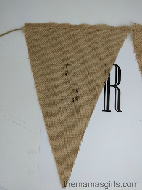 1.  Cut out the burlap in the pendant shapes.  You can make these as big or as little as you want.  The ones in this tutorial are 11 inches long.  The bottom of the triangle is 9 inches.